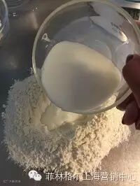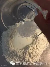 1:面粉中间挖一个窝窝,把牛奶倒进面粉中
