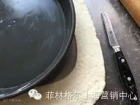 11:按照披萨盘的形状用小刀切下多余的面饼