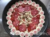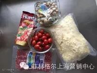 19:再加入萨米肠,圣女果,再加入一层马苏里拉芝士,萨米肠和圣女果,加一层蘑菇
