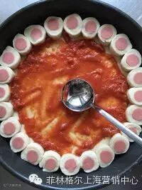 17:在饼底涂上意式披萨酱2大勺