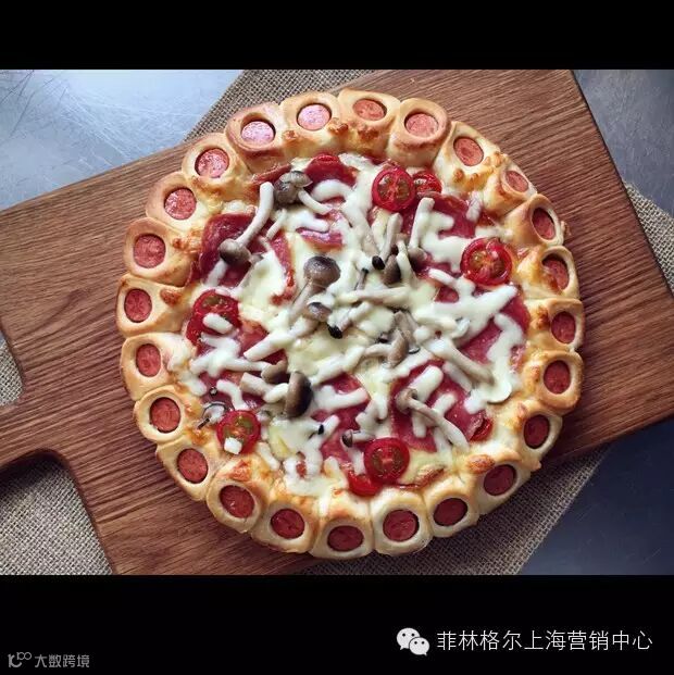 【披萨饼底面团材料】:高筋粉300g、牛奶180g、干酵母5g 、白糖16g、香肠