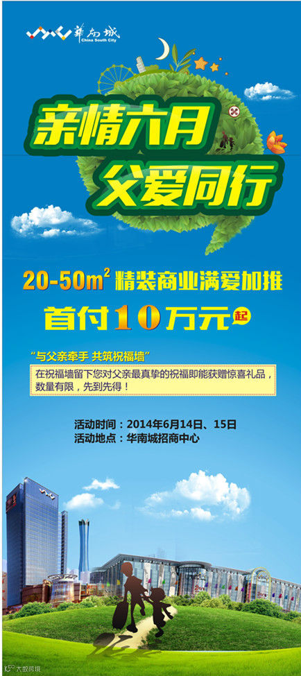 6月14日、6月15日,南宁华南城招商中心将举行一场别开生面的父亲节团购活动,20-50㎡精装商业满爱加推,首付10万元起。优惠多多,礼品多多!