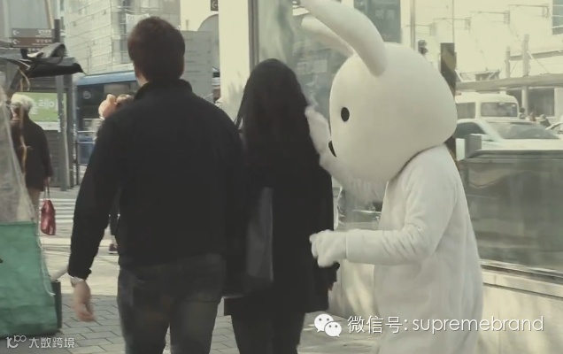 韩国首尔大街上有只人装扮的兔子,不知道犯什么神经,乱扯路人头发,惹得路人又惊又痛,莫名其妙又火大!