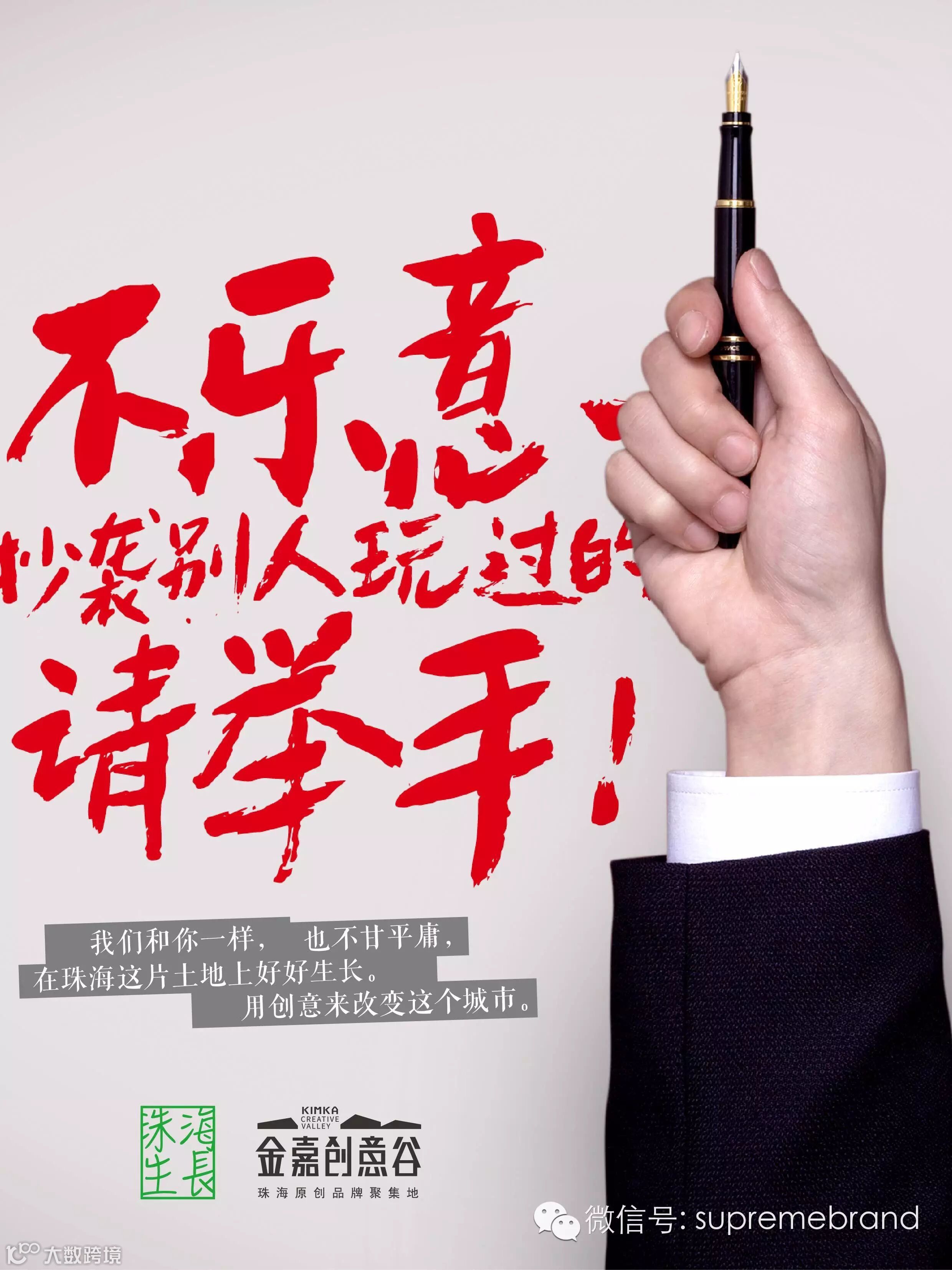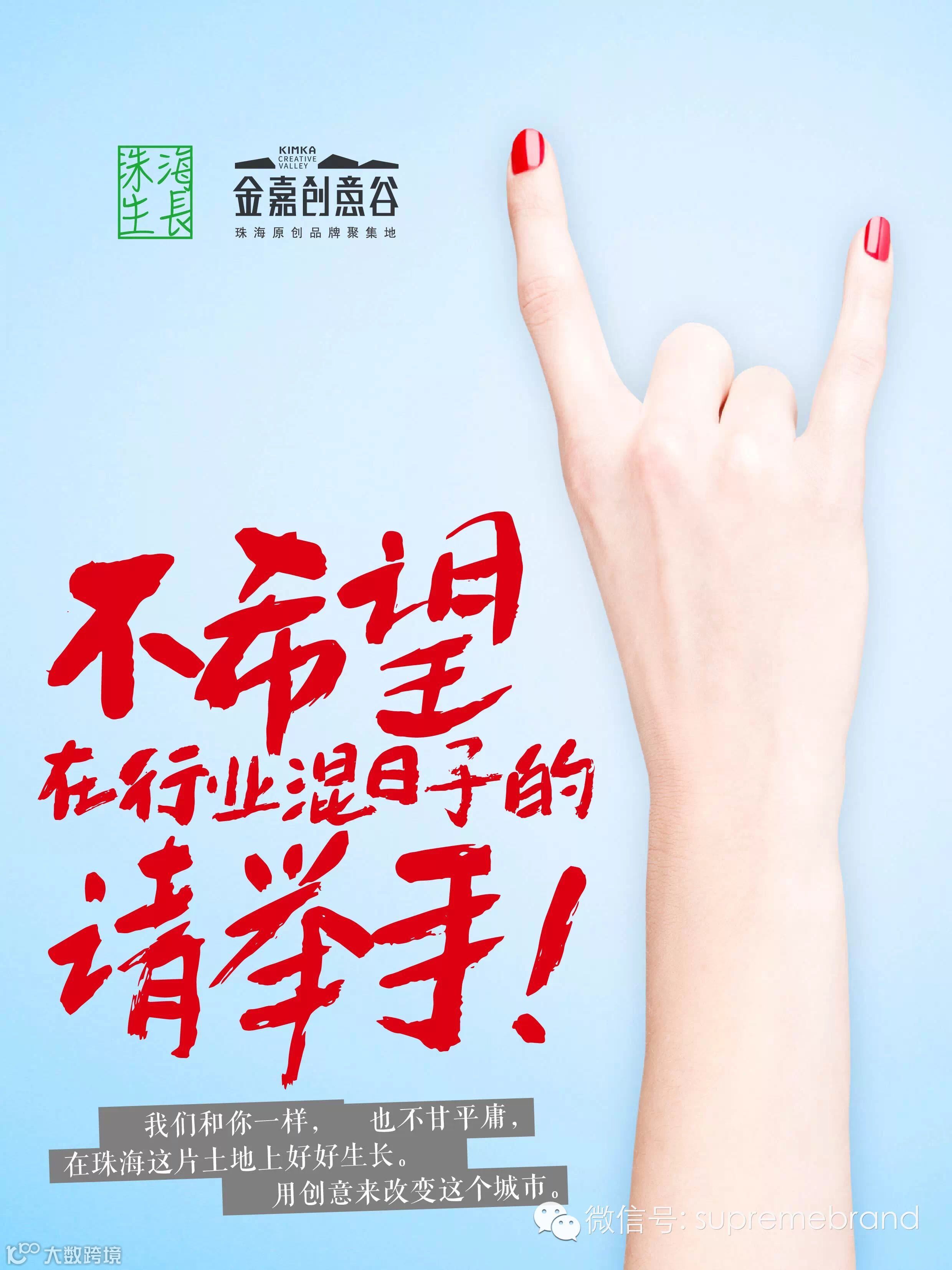 金嘉创意谷希望通过这次“请举手”系列的微信传播,带动珠海文化创意产业的集体发声,表明珠海每一个文化创意人内心的渴望、追求和态度,提升正面力量,触发社会共鸣。团结每一股文化力量,为身在珠海的文化创意人营造真正的文化归属感,以及社会的认同感,共同提升珠海良好的文化氛围。
