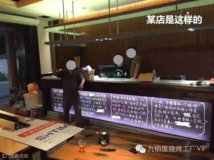 我们不清楚是哪个同行服务的这家店,但希望你们能出更好的创意来真正帮到客户。最后想对那个同行和这家店说一句:记得要做最真实的自己,欢迎有空去900°烧烤工场体验一下。