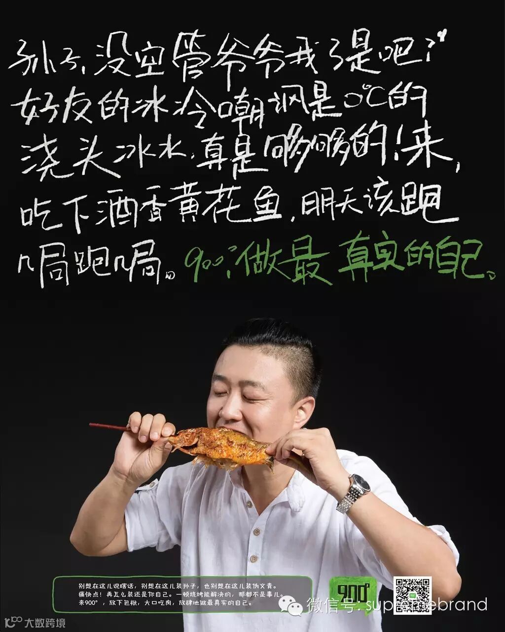 900°烧烤工场不仅仅是一家餐厅,至上是把它当作一个品牌在运营。900°烧烤工场有自己的品牌定位、品牌形象、品牌个性、品牌主张等等一系列紧密关联的东西。装修风格、文案、画面、态度,这些呈现出来的东西也是紧扣着900°烧烤工场定位和所主张的东西的。而这些,是别人抄不来的。不是通过简单地照搬风格和创意,就能呈现出来的东西。