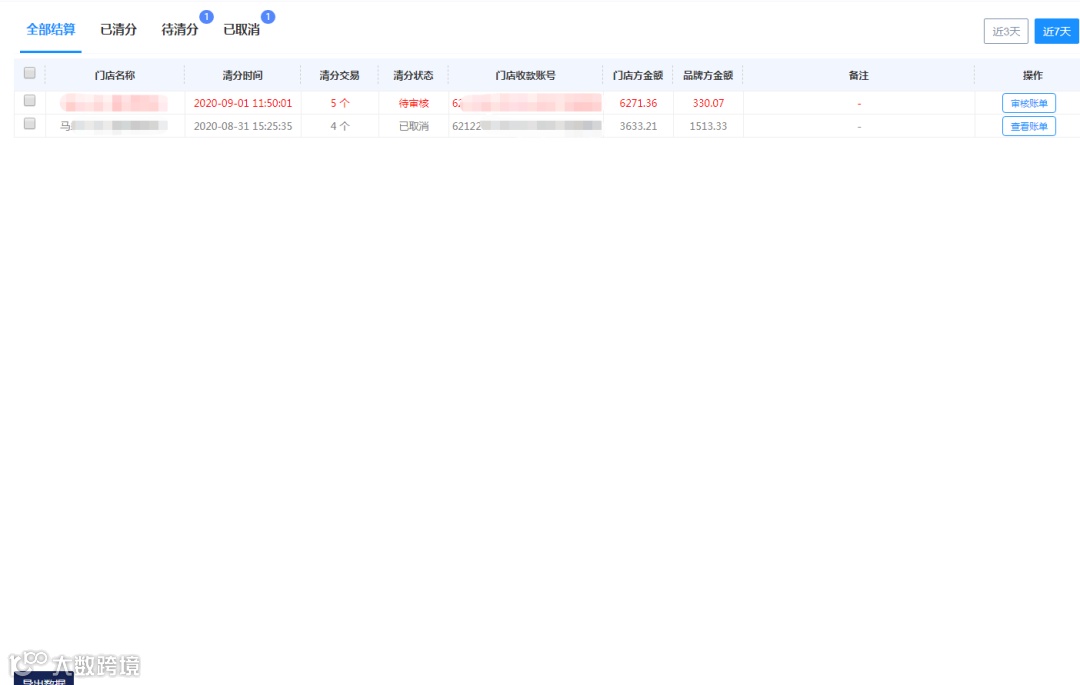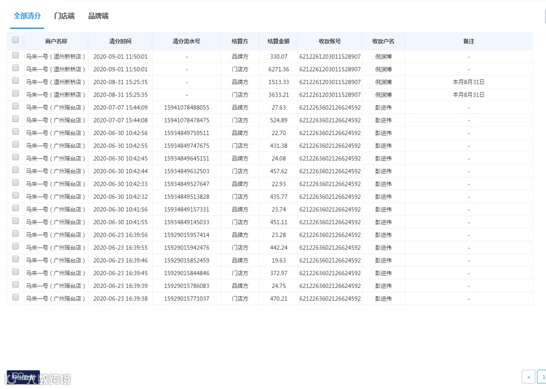 记录已经清分给品牌和门店端的金额和记录,方便查账。
