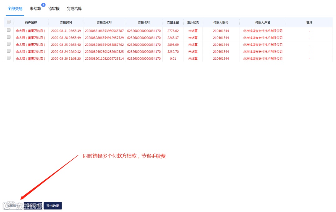 6)通过外卖邦设置清分规则即可生成各种账单,并清分到公司一般户和门店实体卡