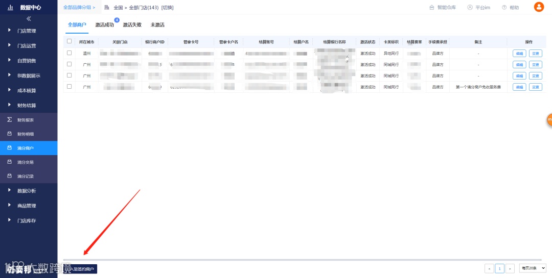 这里能看到已经开通的门店的交易信息,可选择手动读取,也可以导出数据对比。