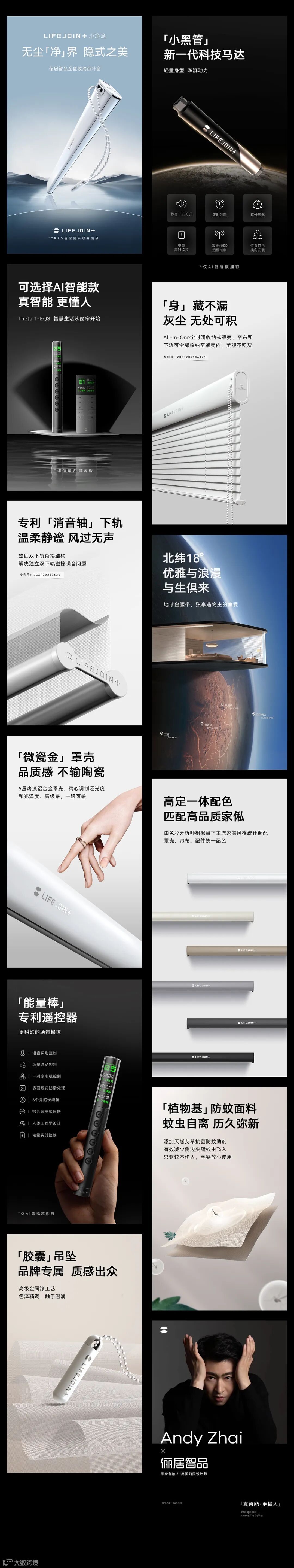 俪居智品由德国归国设计师Andy Zhai创立,是国内首家集产品研发、生产制造、成品销售及售后服务于一体的高端Al智能窗帘品牌。秉承“科技、美学、体验”的核心价值理念,新产品、新模式、新技术、新赋能的“四新”模式,以及线上线下深度融合的O2O双驱动新零售模式,彻底颠覆传统遮阳行业,立志用创新改变时代,成为未来智能家居第一品牌。