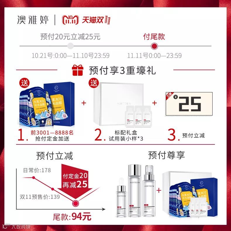 注:限量3000张,现在就可以抢,双十一当天付尾款就会立减10元~