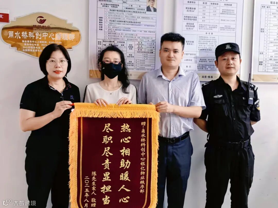 近日,一面写着 “热心相助暖人心,尽职尽责显担当” 的锦旗,被郑重送到银亿物业甬水桥科创中心园区保安团队手中。这面鲜红的锦旗背后,藏着一段 40℃高温下守护八旬老人生命安全的暖心故事,字里行间皆是责任与温情。