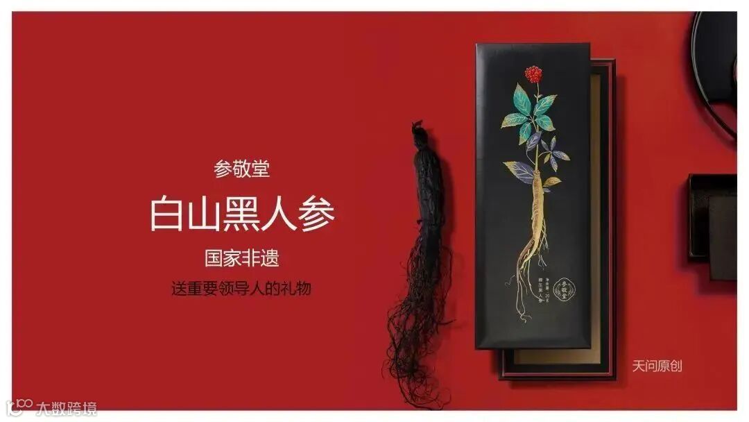 「黑人参」,是用漆雕的方式打造的一个产品,这个产品体验手感很好,它改变了国内外所有人参产品的设计手法,就是一做人参就用红色+巨大的“人参”的文字,而是用一种相对内敛的方式体现人参的鲜活感。