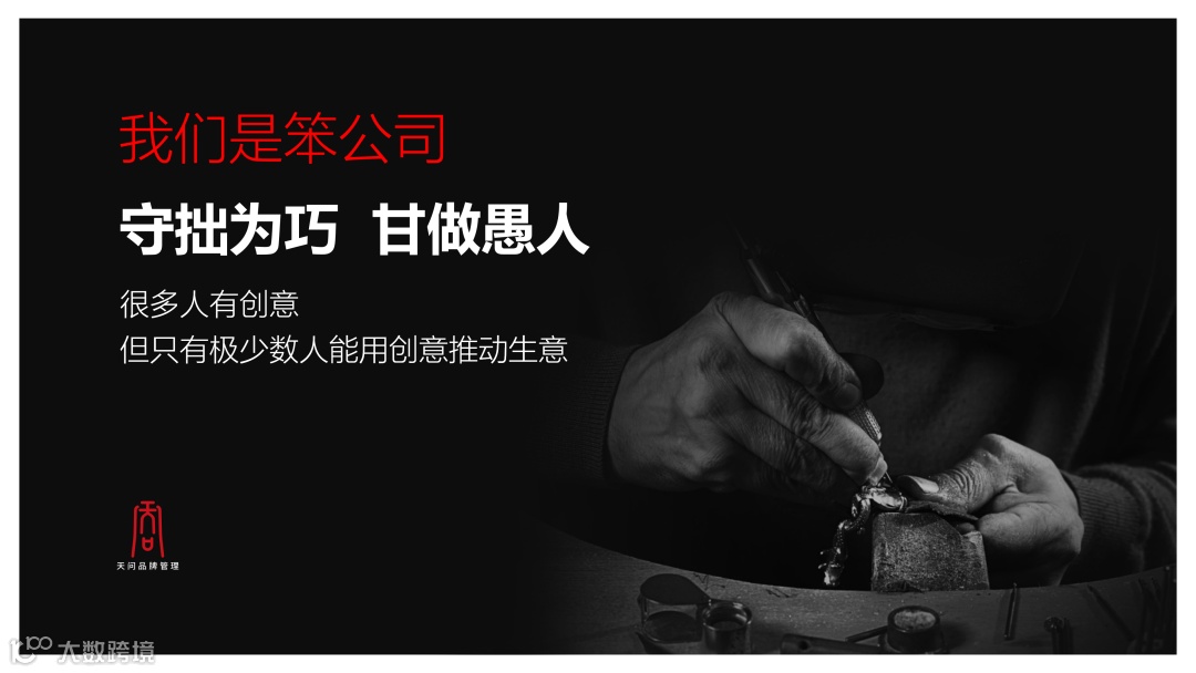 长期以来我们的工作其实是一个搬运工的工作,也是一个泥水匠的工作,不停地筛沙子,从沙子里找小块的石头和金子。品牌服务从来不是一锤子买卖,它是一个价值观和方法论持续输出的过程。所以做一个简单的公司,做一个简单的事情,我们内心里会更踏实。