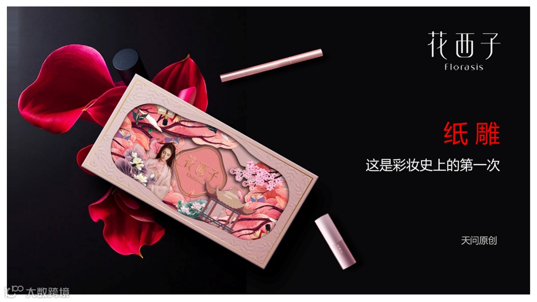 「花西子」的纸雕风格是从这个产品开始的,这是彩妆史上第一次使用纸雕,成为了国内彩妆的典范。