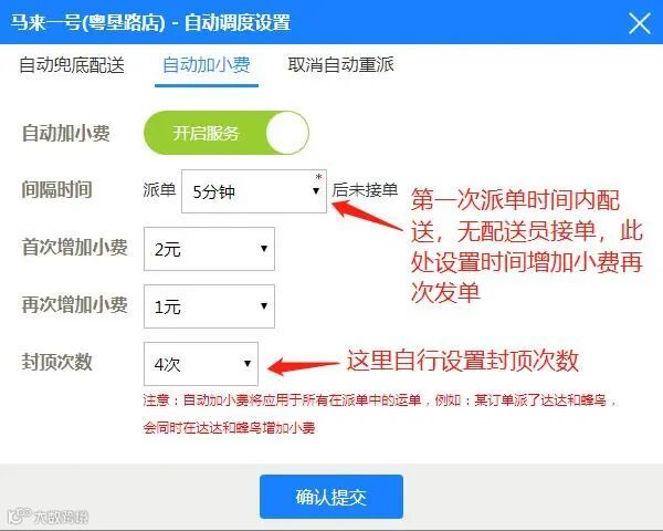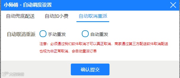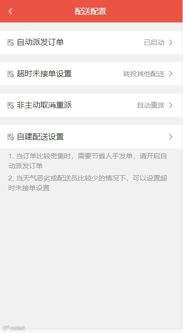 为了更方便商户使用,新增加的自动兜底配送,商家可以自行选择增加其他第三方配送,当派单第一个第三方无人接单的时候,就转投其他配送,可以同时转投多个,避免无骑手接单的情况。