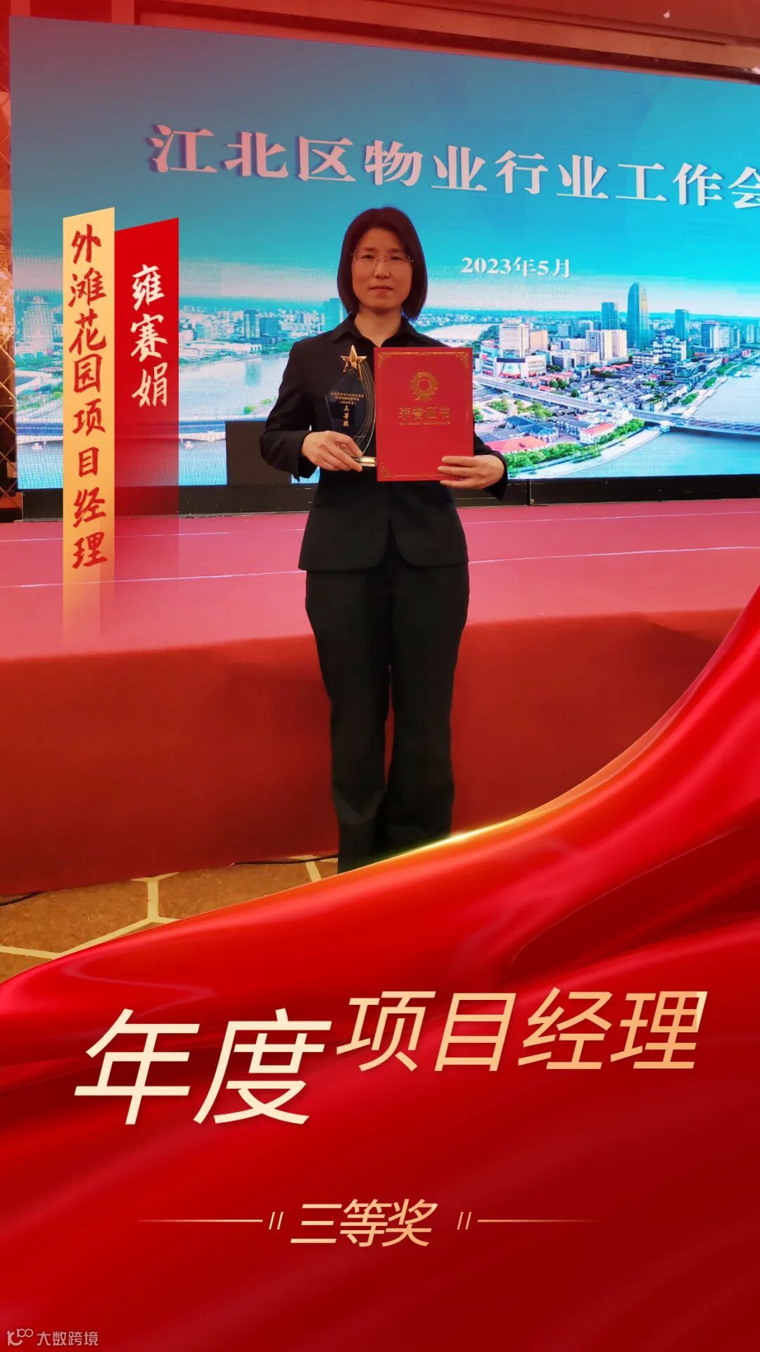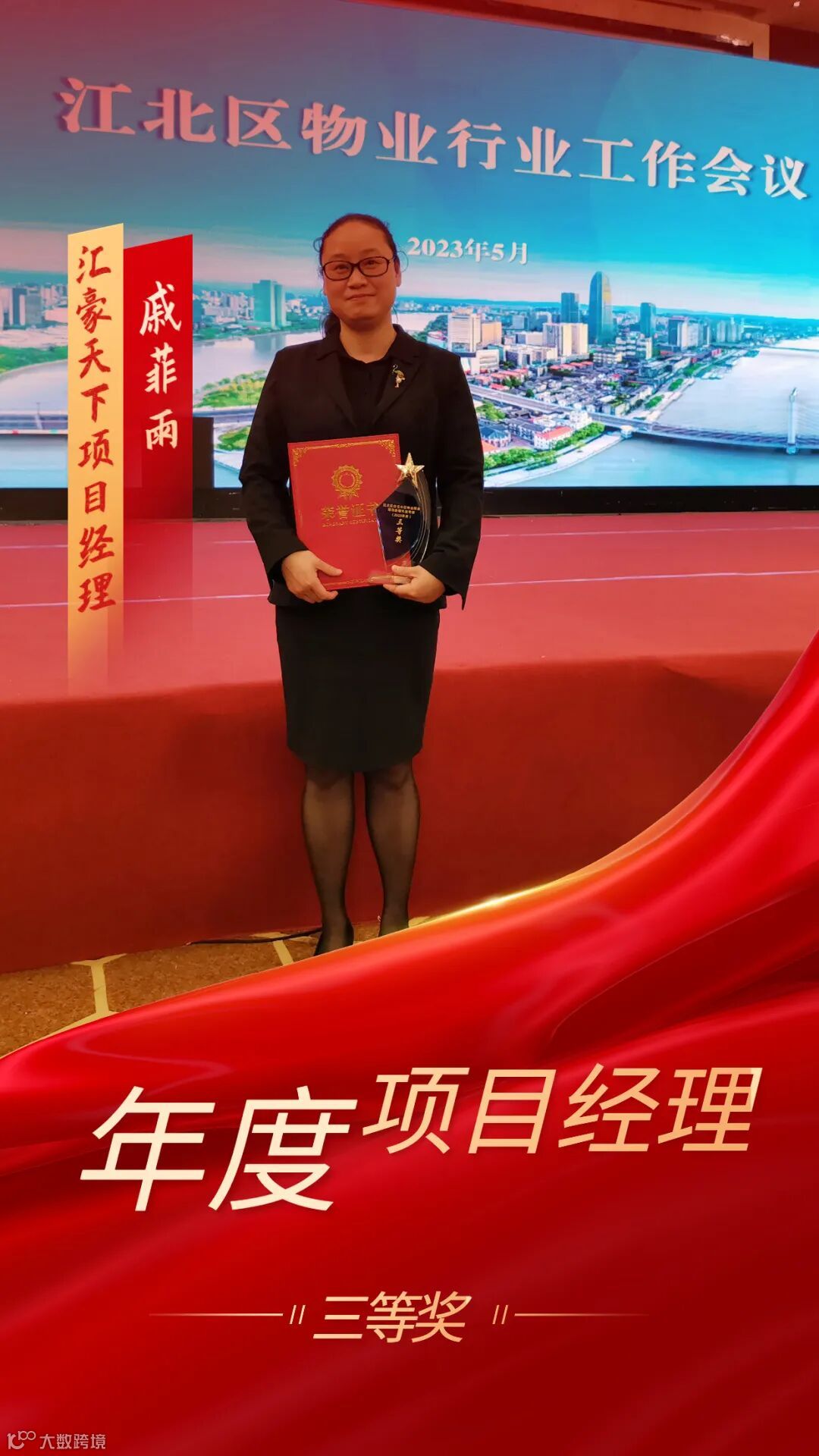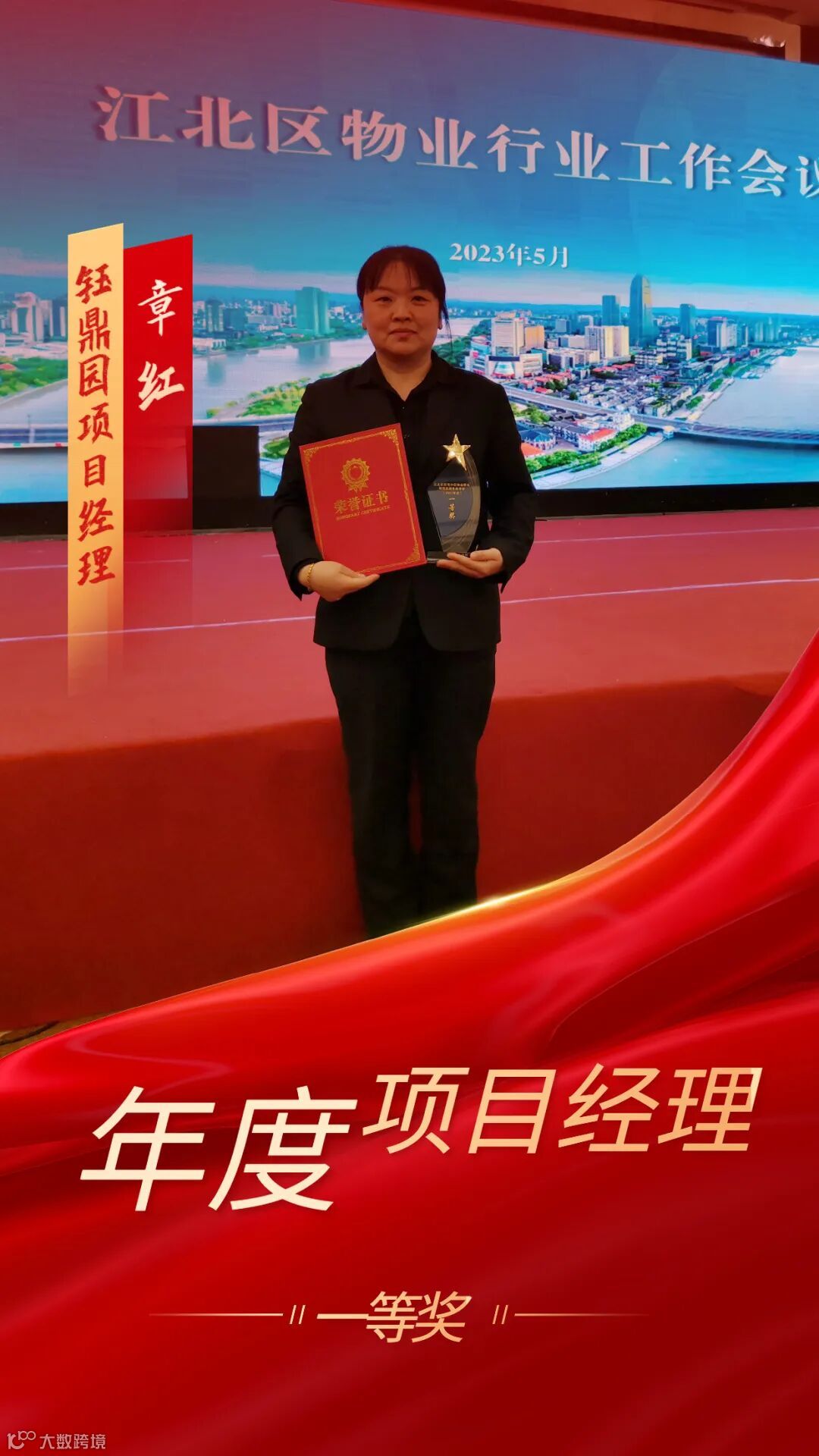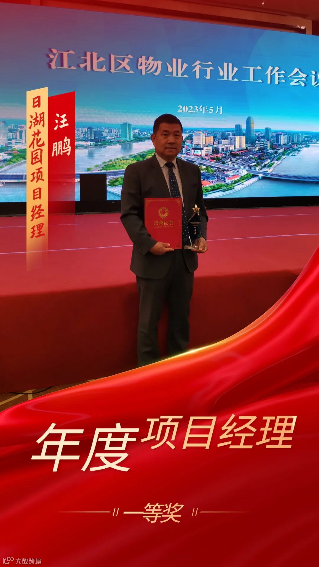 近日,喜讯传来,在前不久刚闭幕的2023年江北区物业行业工作会议上,我司汪鹏、章红、戚菲雨、雍赛娟四位优秀项目经理获得了由江北区住建局颁发的“年度项目经理”荣誉称号。