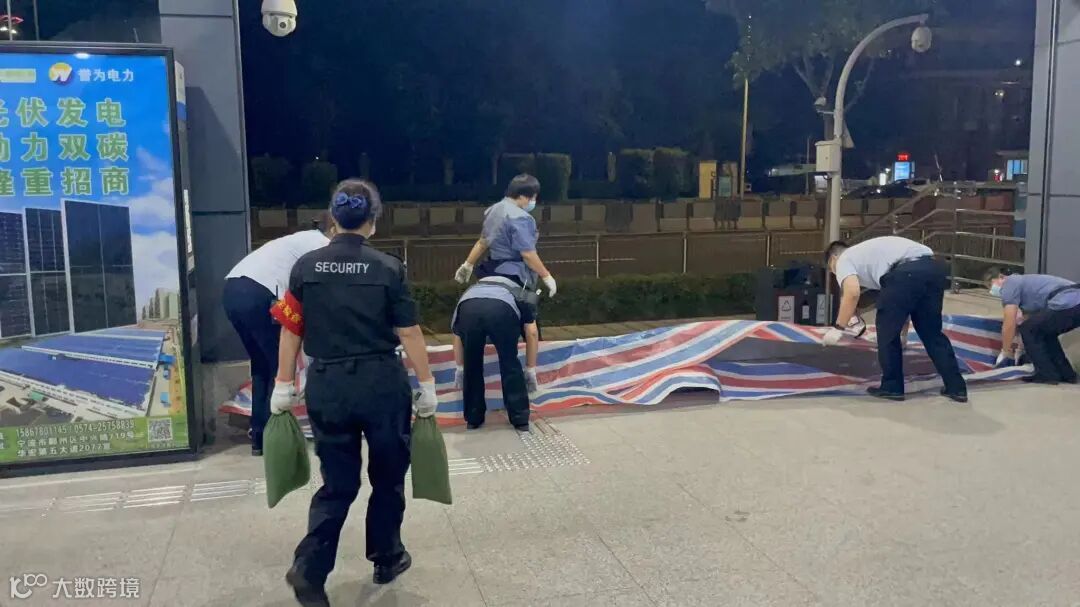 14日一早,宁波轨道交通2号线的项目员工们,在坚守岗位做好安检工作之余,协助各个站点搬运大量防汛沙袋、防淹挡板等物资,全情投入防台防汛工作。