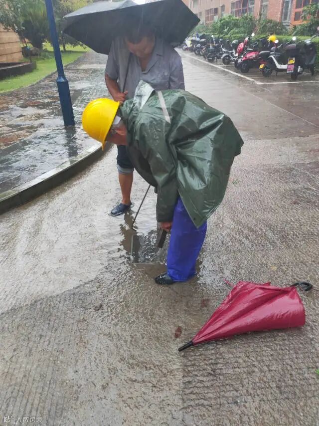 极端的风雨天气里,散落的树叶、折断的树枝、流淌的泥污、四散的杂物纷纷向排水口集聚,“清洁天使”更是一马当先,冒着瓢泼大雨用最短的时间完成清理工作。