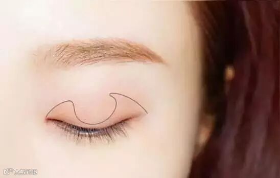 第二步:粉棕色眼影用扁平刷沾取,加深眼头眼尾,这里注意中间空出来的部分。