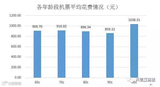 在机票花费上,00后依旧领先,平均花费达到1038元左右。而90后们,平均机票的花费情况是859元。