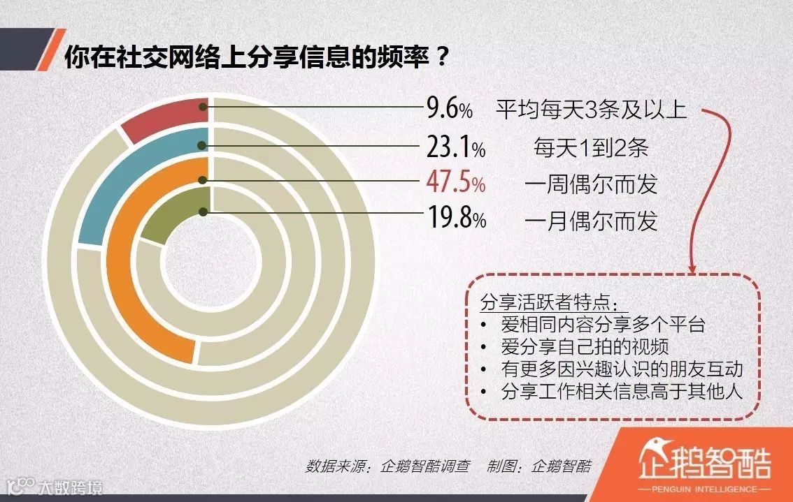 一、 活跃的大多数:超过七成智能手机用户,会在社交网络上分享信息