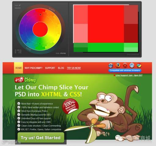 在我们网页中色彩运用有这样几个法则:我们以实例进行几种对比