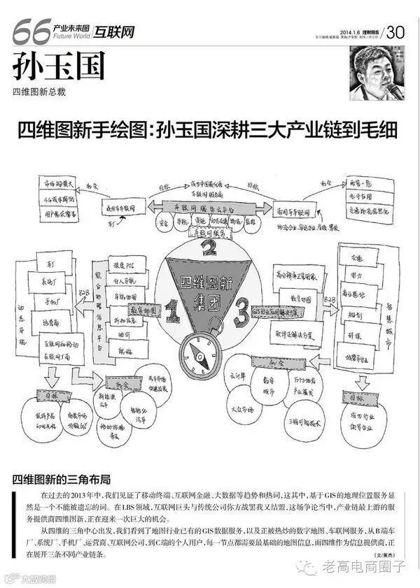这几天微信上传爆了42张手绘战略图,包括阿里巴巴、中国平安、光大银行等多家企业的战略图曝光。战略地图(Strategy Map) 由罗伯特·卡普兰(Robert S. Kaplan)和戴维·诺顿(David P. Norton)提出。他们是平衡记分卡的创始人,在对实行平衡计分卡的企业进行长期的指导和研究的过程中,两位大师发现,企业由于无法全面地描述战略,管理者之间及管理者与员工之间无法沟通,对战略无法达成共识。“平衡计分卡”只建立了一个战略框架,而缺乏对战略进行具体而系统、全面的描述。2004年1月,两位创始人的第三部著作《战略地图——化无形资产为有形成果》出版。