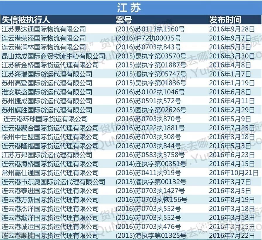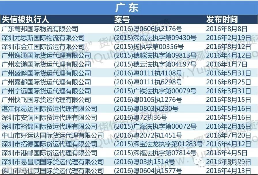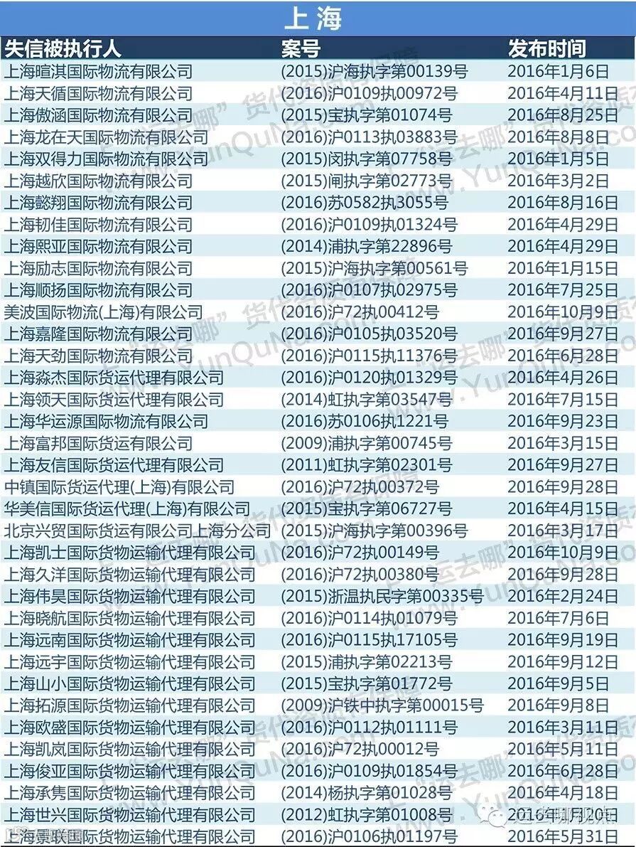 近日,全国最高人民法院公布了2016年最新失信企业名单,“运去哪”也从中整理了相关的货代、国际物流企业名录,赶紧来看看有没有认识或者正在合作的。