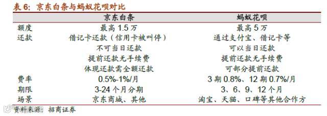 不同于苏宁、海尔等产业系消费金融公司,京东、阿里的互联网消费金融业务还未获得 国家的牌照支持,属于创新类的消费金融服务。“京东白条”、“蚂蚁花呗”是依托于电 子商务平台而设立的类信用卡产品,可用于购买平台商家商品。
