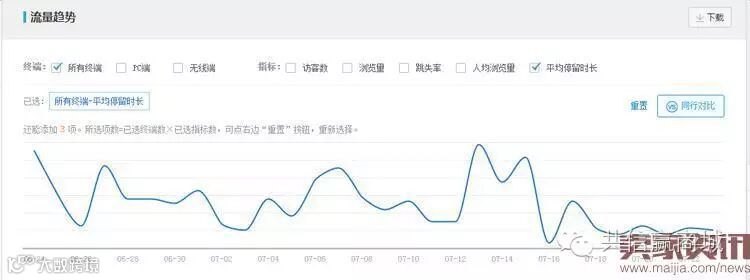 如分析访客平均停留时长,复选框勾选所有终端和平均停留时长。