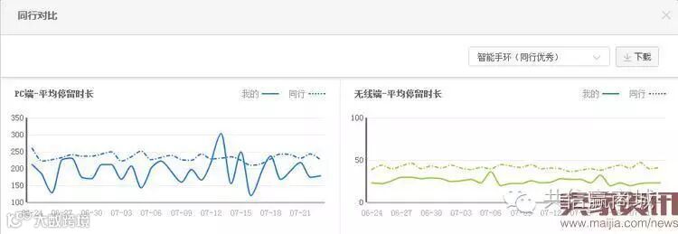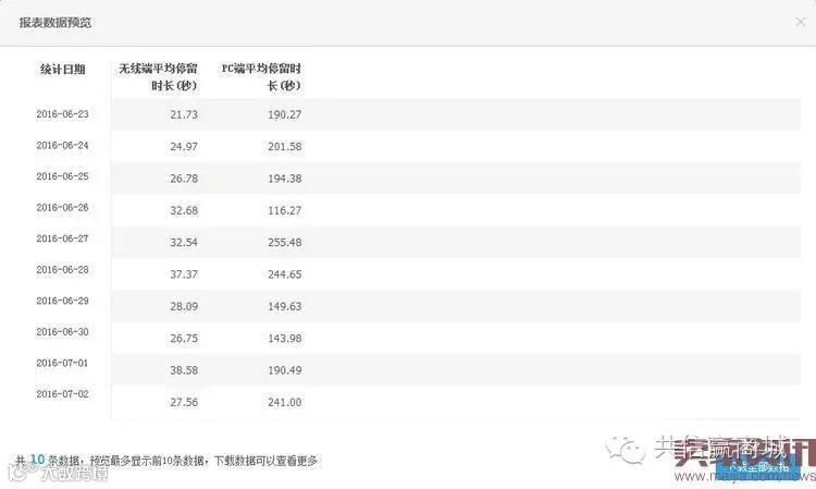 以最近30天为时间段,经过计算,该单品的详情页在无线端的平均停留时长为27.5S,PC端为178.5S