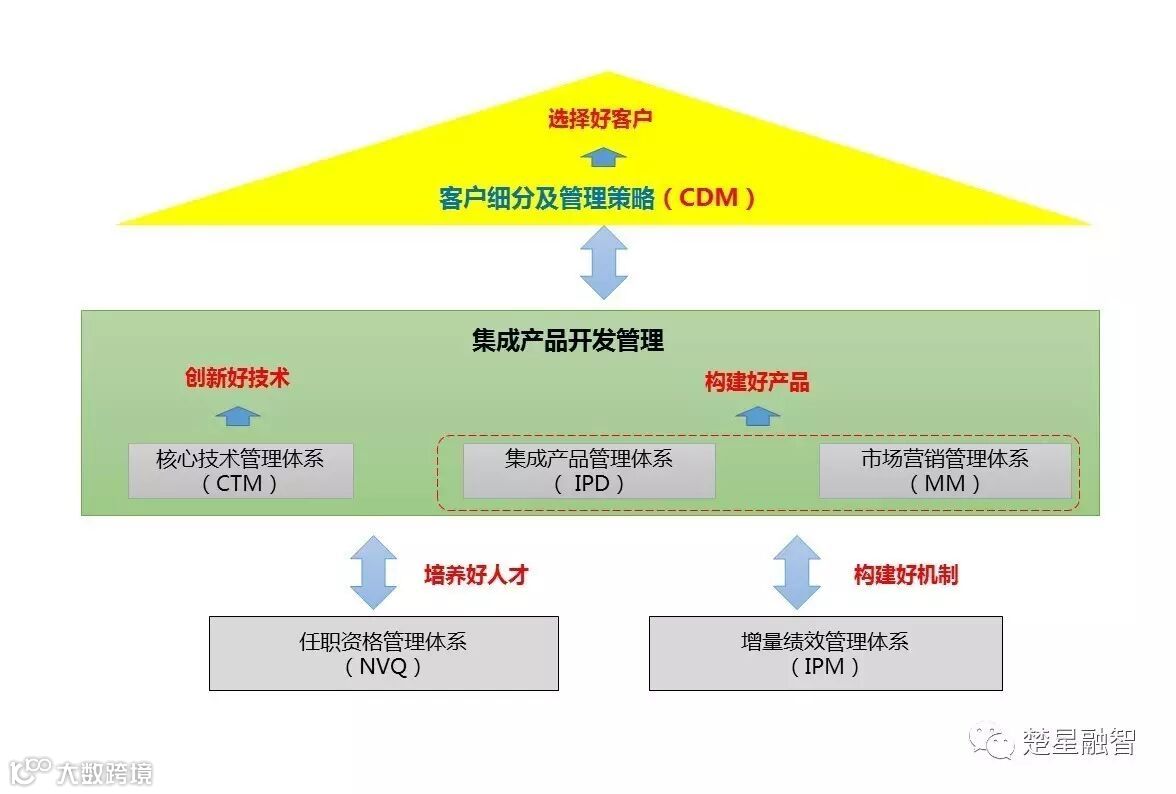 通过客户细分及管理策略体系(CDM)选择好客户;通过核心技术管理体系(CTM)创新好技术;通过集成产品管理体系(IPD)和基于市场需求的营销体系(MM)构建好产品;通过任职资格管理体系(NVQ)培养好人才,通过增量绩效管理体系(IPM)构建好机制。最终实现“一客户一产品一策略一财务模型一团队一激励”的商业模式,在行业萧条的时期,彻底摆脱低层次的对手,实现企业的市场和财务成功,建立行业的领先地位。