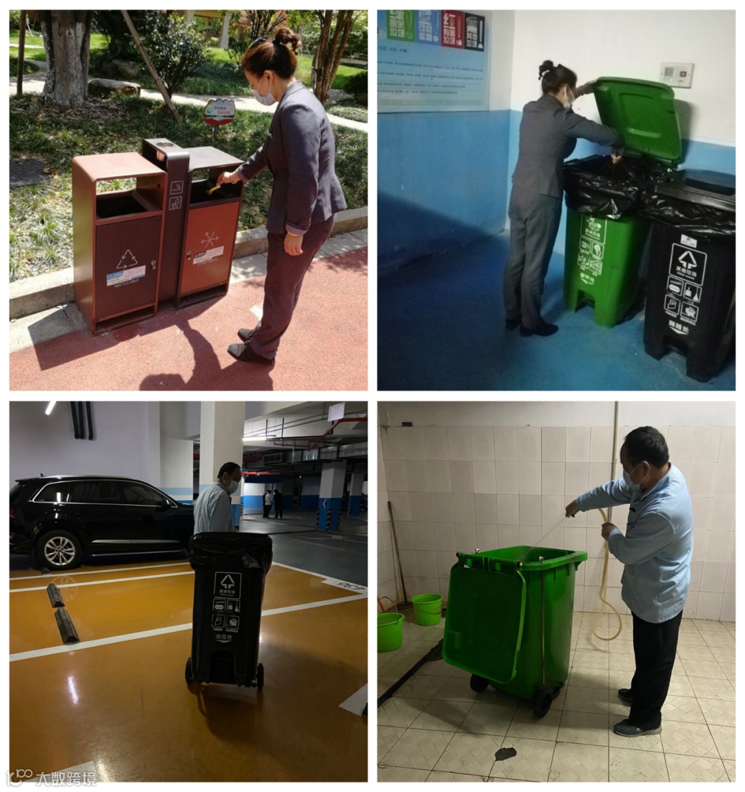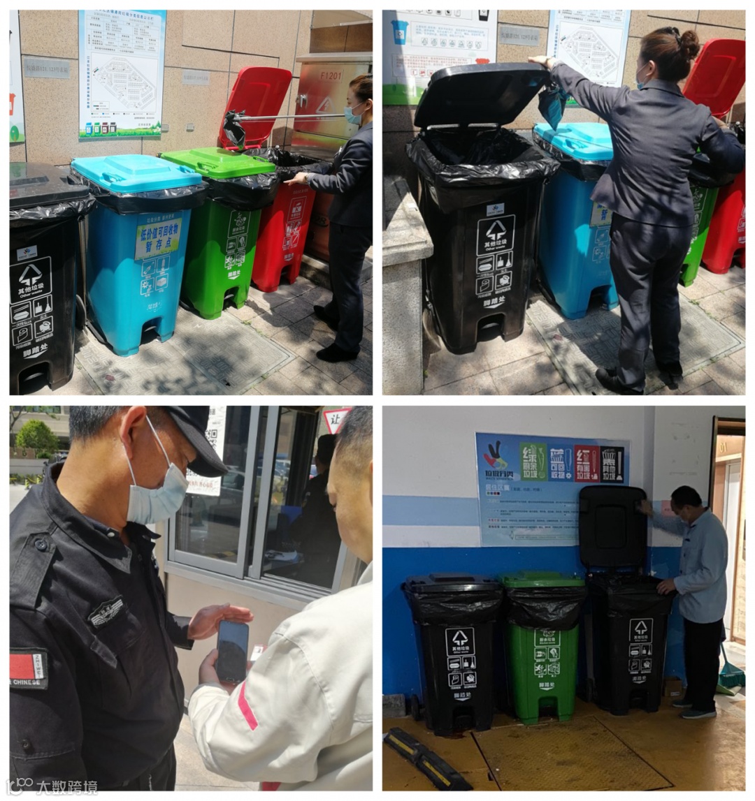 与此同时,我们前期对各省市先进垃圾分类措施做了大量调研工作,设立各幢垃圾桶摆放点、生活垃圾及厨余垃圾点位,确保按时清运。同期梳理出近30个点位,响应政府号召撤桶并点。