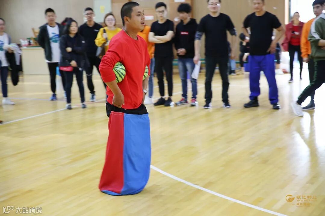 穿上“麻袋”,手夹西瓜,运动员们化身为袋鼠,卖力地在赛场上蹦跶蹦跶,只为将瓜快速运到对岸与队友接力。