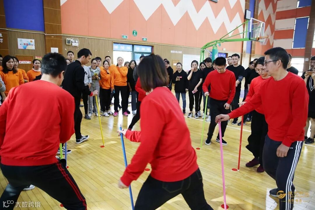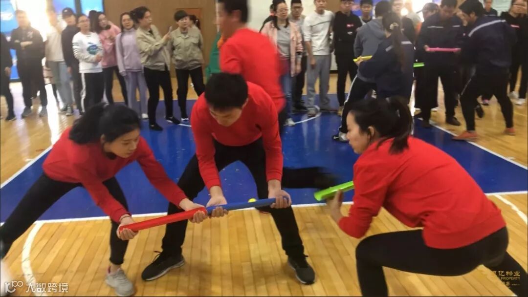 斗转星移,8名选手各持一根杆子,人转杆不倒。我们转的不是杆子,是团结。