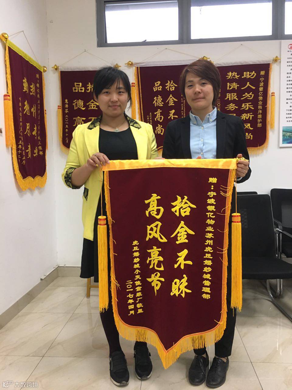 4月10号,苏州婚纱城管理部保洁处经理捡到钱包一个,内有现金1500余元、身份证、银行卡多张等,归还失主。