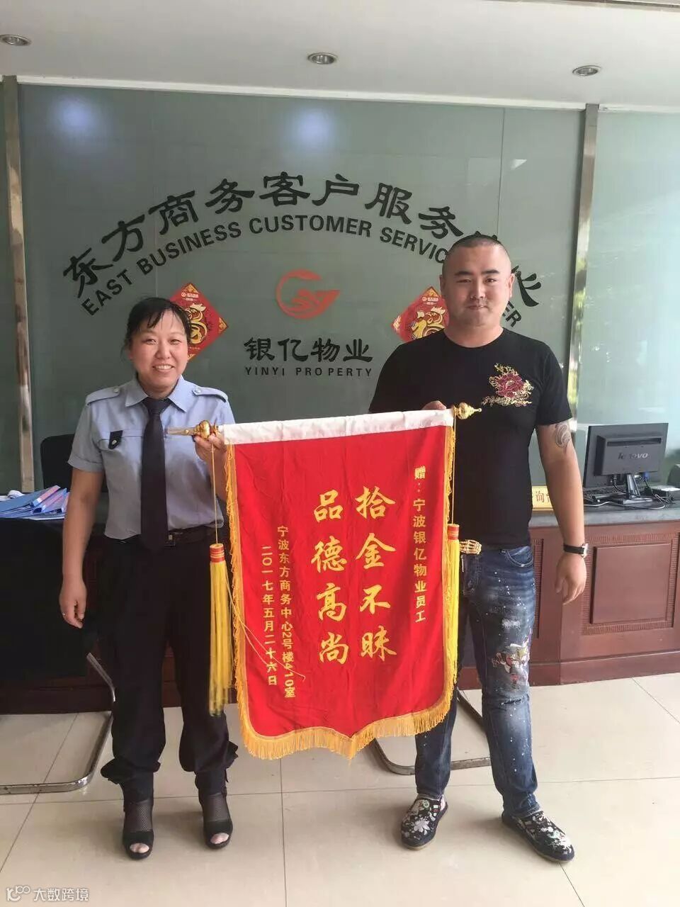 5月21日,东方商务中心管理部秩序维护员胡群于中午在巡逻时,捡到一个钱包,有多种证件,及时归还至失主。