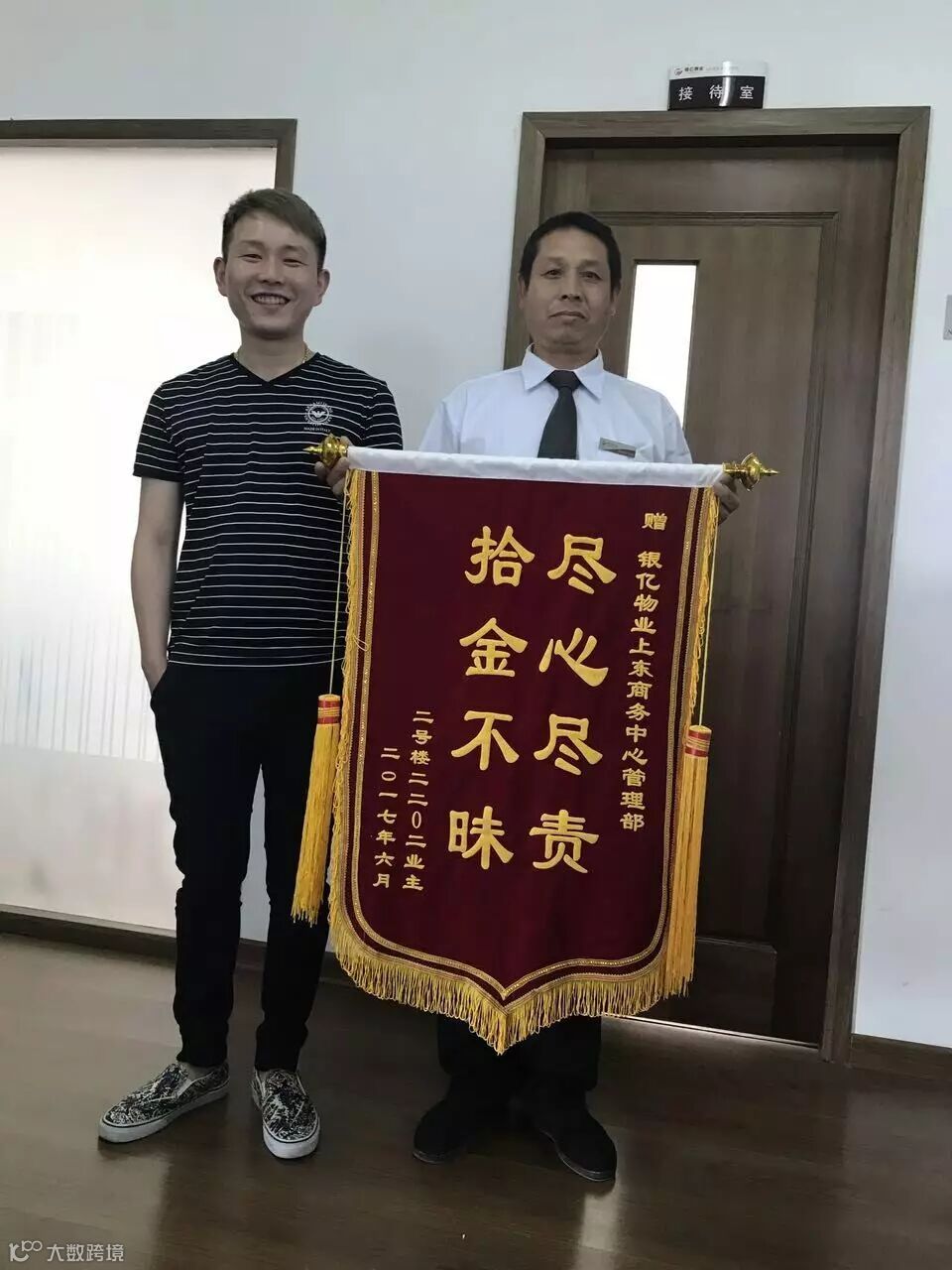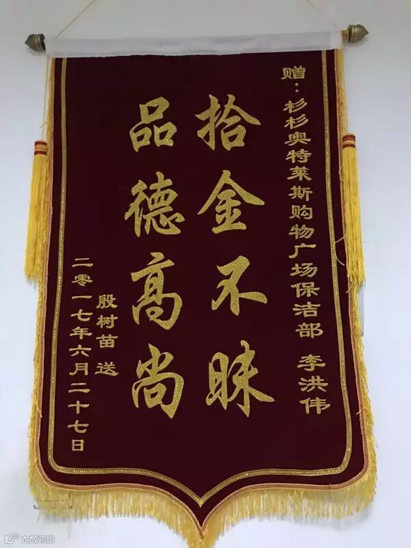 6月27日,哈尔滨杉杉奥特莱斯管理部保洁处班长李洪伟,在卫生间巡场的时候拾到内含证件、现金等物品的皮包一个,第一时间归还失主。