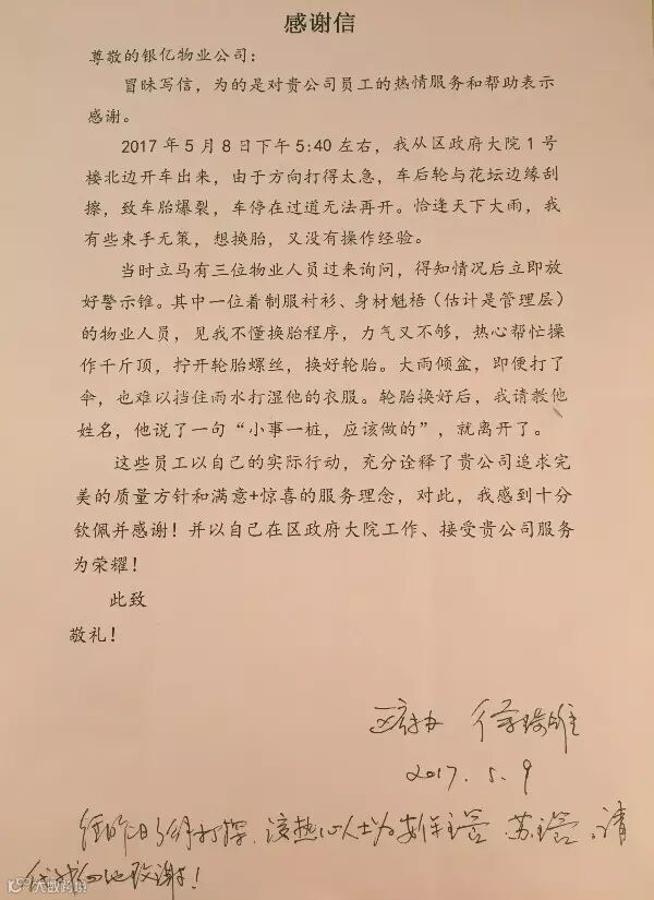 好样的,物业人!物业人的好人好事还有很多很多,这只是2017年上半年银亿物业好人好事的凤毛棱角。今天把这些讲出来并不是夸我们有多么高尚,只是想让大家知道,我们物业真的是在真诚地服务。请让我们之间多一些信任,多一份理解。银亿物业必以最好地服务回报大家。