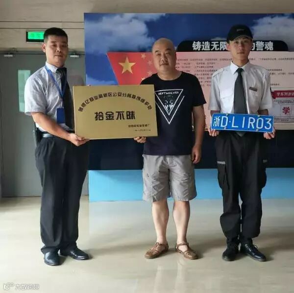 7月21日,高新区公安分局管理部项目秩序维护处组长李艳伟,外围巡查捡到宝马车牌一个,及时归还失主。