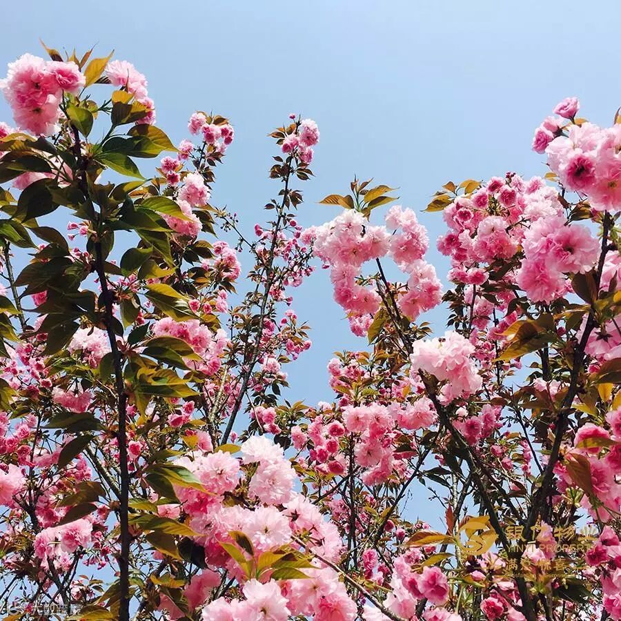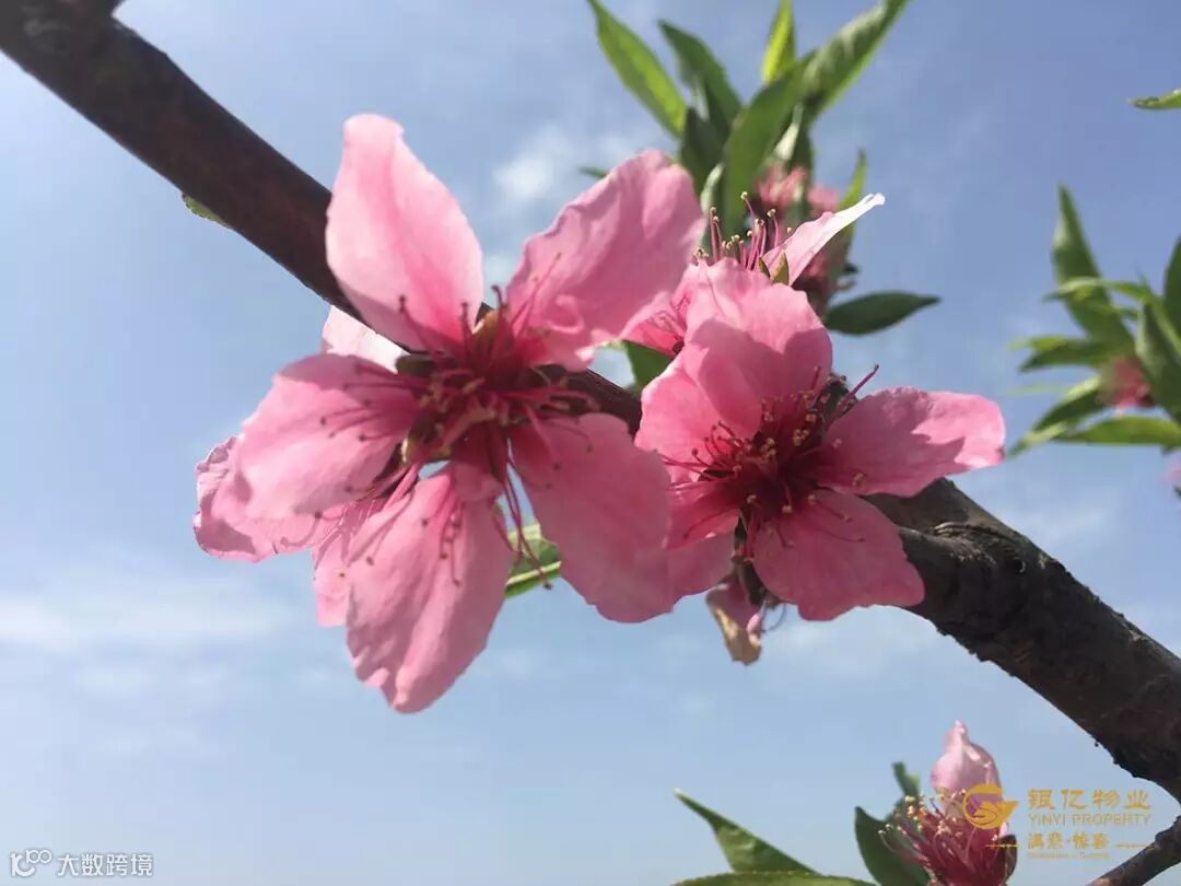 桃林的小道上,有一排樱花,也许是不甘在十里桃林中被淹没,竟也开得耀眼,让人移不开视线。大朵大朵的樱花,在绿叶的衬托下,格外美艳。