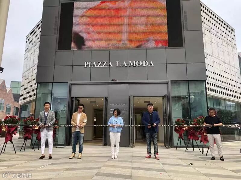 澜杜(La Moda)总经理蒋犇、商场领导王香完、澜杜(La Moda)董事长孙野、运营总监季波共同为青岛海上奥莱奢侈品旗舰店 PIAZZA LA MODA剪彩。