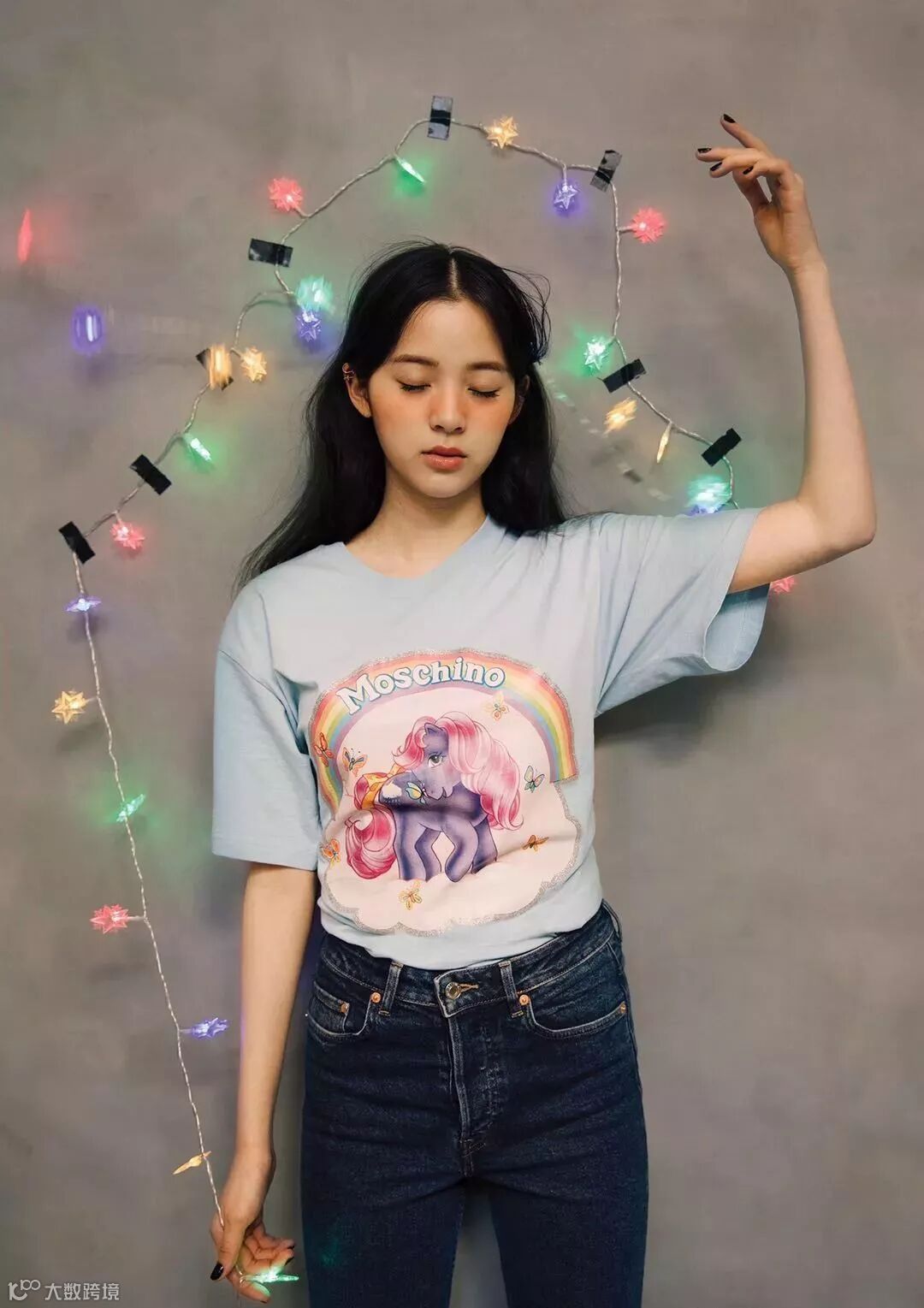 不经意间就美的惊心动魄的佟丽娅,白色的彩虹小马宝莉T恤搭配超短牛仔裤,不仅大大的减龄,还完美的秀了一把大长腿!