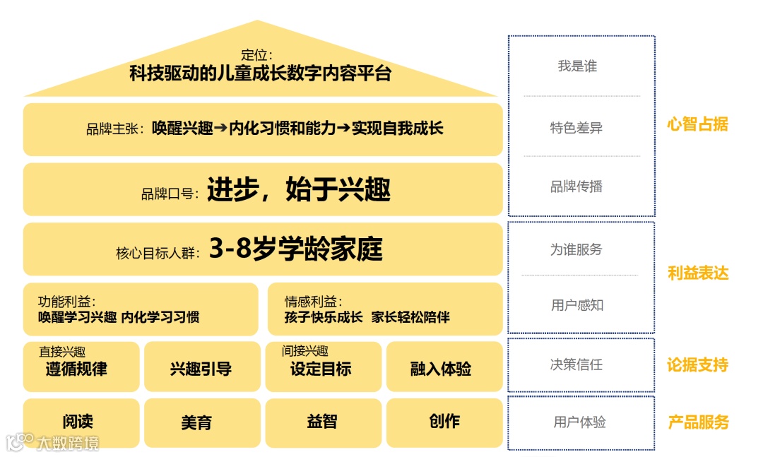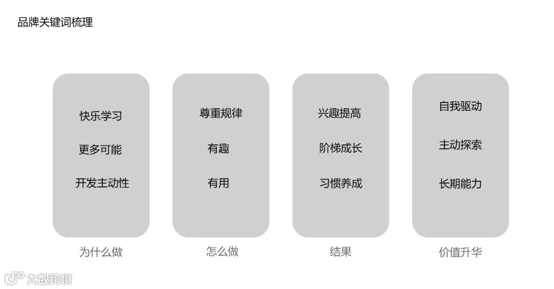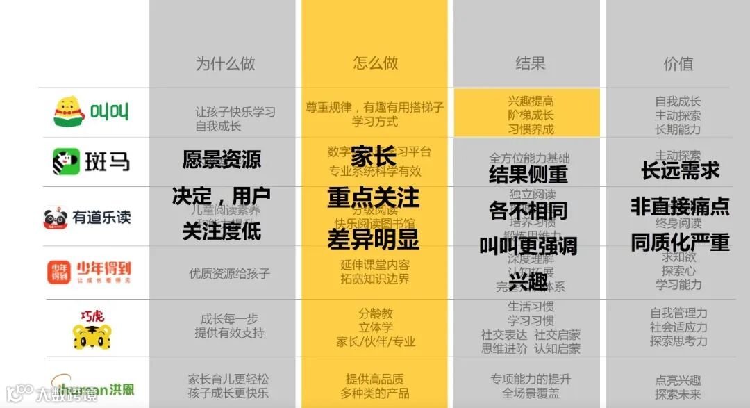 确定“提高学习兴趣”是家长对数字学习平台的普遍需求,并在叫叫用户中获得积极验证后,我们通过竞争对手的品牌价值审计,进一步验证“兴趣”是否能够建立建立叫叫品牌的差异性壁垒。