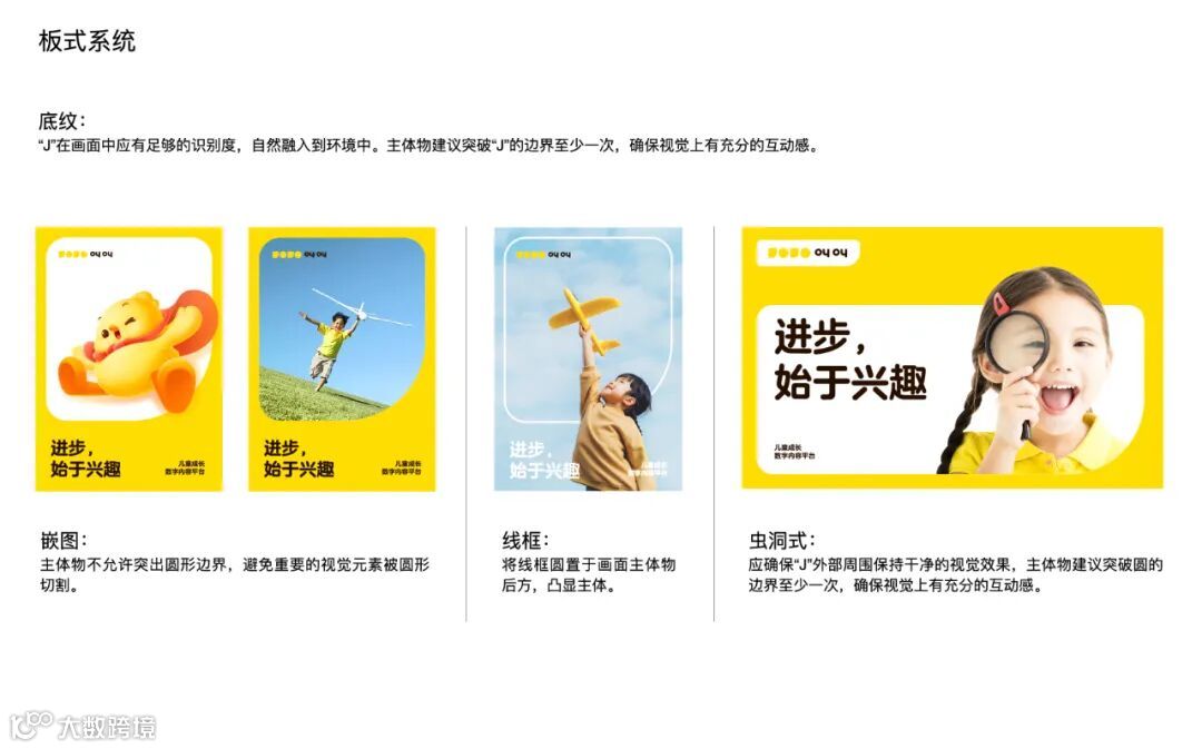 叫叫品牌标志提取自品牌IP“小鸡叫叫”的五官特征和品牌英文名JOJO,我们将标志变为抽象的空间和画板,在不同的场景下将标志融入趣味化内容,将标志变为:探索趣味的载体,用标志的更多可能,唤醒孩子的想象力和探索欲望。