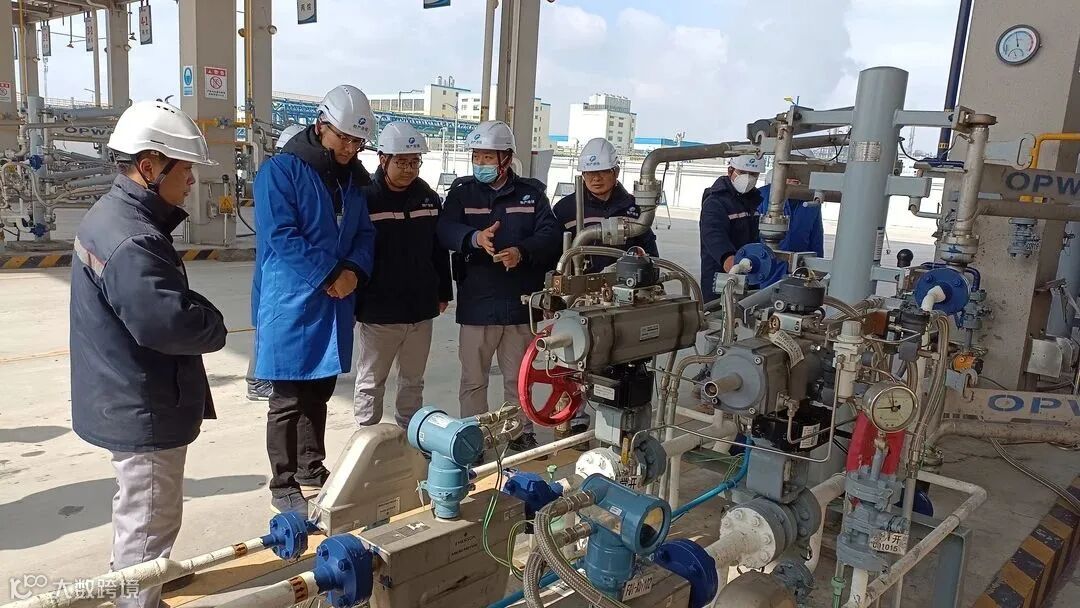 李兢副总裁一行深入公司生产现场,对库区、充装台、中控室等重点区域开展检查,详细检查了解安全设施运行、员工巡检和规范操作、安全文化示范企业建设推进等工作,并查看台账记录和视频回放。