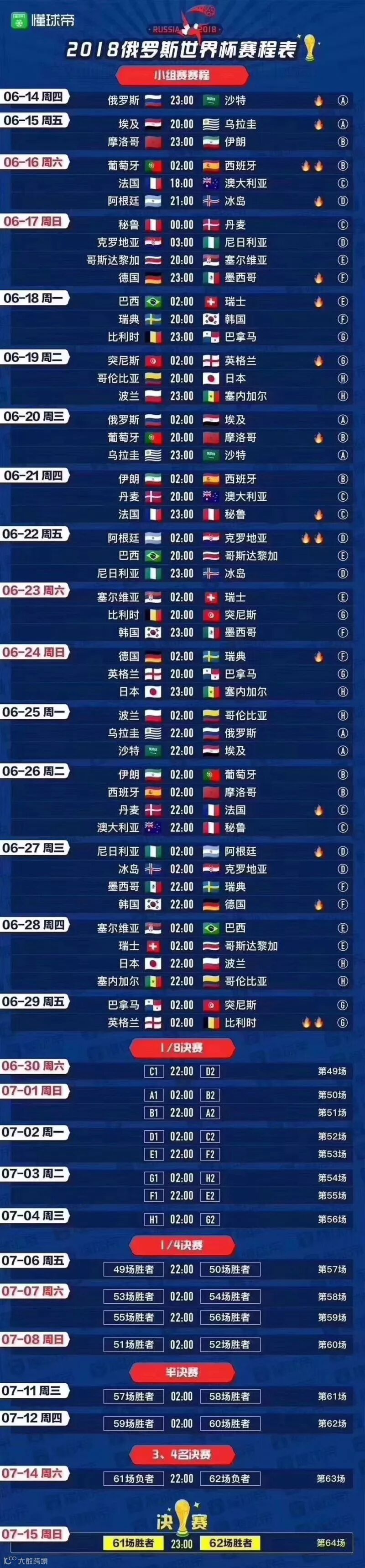 最后附上2018俄罗斯世界杯赛程时间表(北京时间)