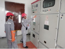 港储公司电仪工程师方炜、电工张毓高温下开展20KV检修维保工作。