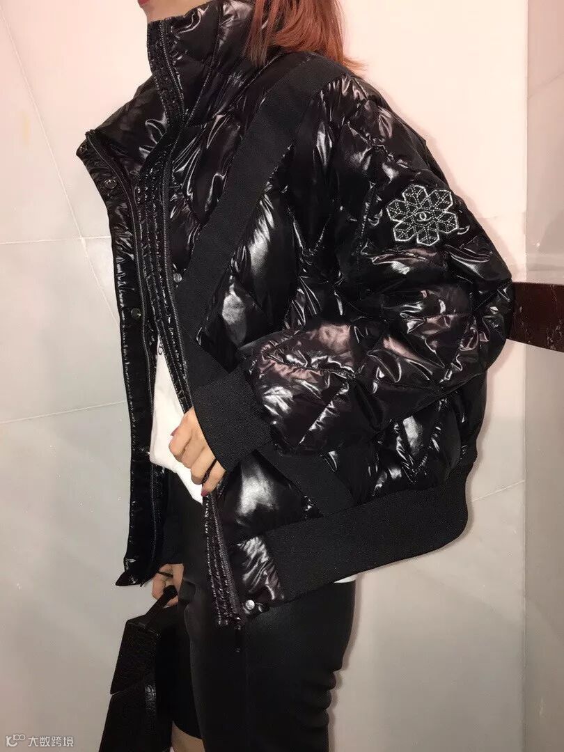 黑色山茶花刺绣羽绒服,Chanel袖子标志配后背交叉设计,很酷有没有!